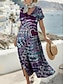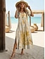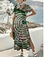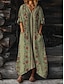 Femmes Robe maxi Robe bohème Robe Décontractée Robe trapèze Robe Imprimée ancien Extérieur Plage Vacances Coupe Ample Cœur Teinture par nouage Manche Courte Col en V Vert Été Printemps
