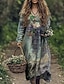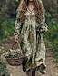 Femmes Robe Maxi Robe bohème Robe Vintage Robe Décontractée ancien Quotidien Extérieur Vacances Coupe régulière Teinture par nouage manche longue Col en V Vert Printemps Automne