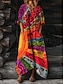 Femmes Robe Midi Robe bohème Robe Décontractée Robe Imprimée ancien Extérieur Vacances Week-end Coupe Ample Graphique Teinture par nouage manche longue Col en V Rouge Orange Été Printemps Automne