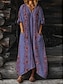 Femmes Robe Maxi Robe Vintage Robe Décontractée ancien Quotidien Extérieur Vacances Coupe régulière Teinture par nouage manche longue Col en V Violet Printemps Automne