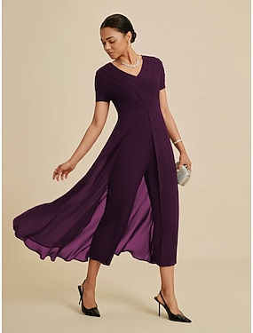 Combinaison femme rouge vin col V design à panneaux faux deux pièces fluide aspect transparent tissu extensible décontracté printemps été automne