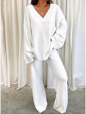 Femmes Mode Streetwear Ensembles de Pantalons Haut boléro manche longue Col en V Couleur Unie Extérieur Travail Occasionnel Noir Blanche Rose Claire Automne Coupe régulière