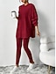 Femme Elégant Mode Chemisier Pantalon Manches 3/4 Col Rond Couleur unie Paillettes Maille Travail du quotidien Noir Violet Marron Eté Ample