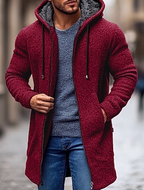 Homme Chandails de Noël Gilet Cardigan Grosse maille Tricoter Normal Zippé Poche Couleur unie Sweat à capuche Tricot Elégant Intérieur Travail Vêtement Tenue Bouffantes Printemps Automne Noir Rouge M