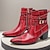 Bottines rouges pour homme en cuir à double boucle – talon bloc tendance et design élégant, parfaites pour les fêtes de fin d'année et les célébrations festives dans une ambiance de Noël.