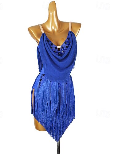 Danse de la salsa latine Robe Volants Gland Fantaisie Femme Utilisation Soirée Sans Manches Maille velvet