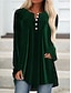 Blouse en Velours pour Femmes Couleur Unie Élégante Stylée Basique Manche Longue Décolleté en V Hauts Quotidiens Boutons Vin Bleu Vert Printemps Automne Hiver
