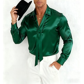 Homme Chemise Comme de la soie Chemise en satin Chemise Décontractée Chemise de Bal Uni Mariage Soirée Argent Noir Dorée Vert manche longue Revers Printemps Automne Vêtement Tenue À lacets
