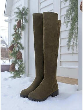 bottes à talons en daim vert pour femmes avec revers en fausse fourrure, talon épais tendance, parfaites pour les vacances d'hiver, les fêtes de Noël et les occasions festives