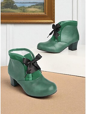 Escarpins Mary Jane vintage années 1950 pour femme, en similicuir vert avec détail nœud - style rétro élégant, parfait pour les événements victoriens et édouardiens et les réunions formelles.