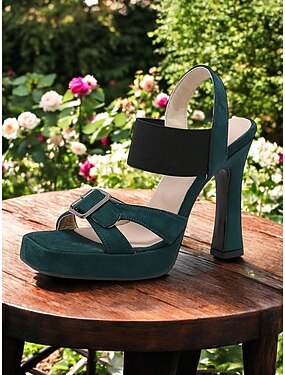 Sandales à talons compensés vertes pour femmes – Chaussures de soirée et d'été à bout ouvert en daim
