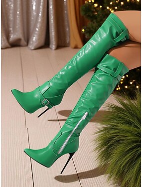 Bottes à talons aiguilles rouges pour femmes, cuissardes à boucle en similicuir, chaussures de soirée à talons hauts pour la vie nocturne &célébrations des vacances de Noël