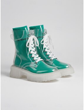 Bottines à plateforme en cuir verni pour femmes, avec talons hauts épais - des bottines tendance et modernes, idéales pour les sorties nocturnes, les fêtes, les clubs et les tenues de soirée.