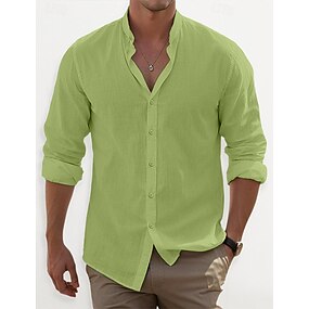 Homme Chemise en lin Chemise à col officier Chemise popover Chemise Décontractée Chemise de Plage Uni Vacances Fête Noir Blanche Rose Claire Orange manche longue Henley Été Printemps & Été Vêtement