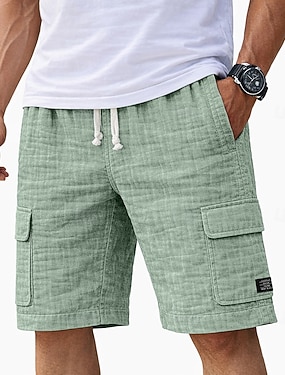 Homme Shorts cargo Shorts Shorts d'été Shorts de plage Short décontracté Cordon de serrage Taille Élastique Couleur Unie Texturé Confort Court Quotidien Extérieur Vêtements de rue Mode Rétro Vintage