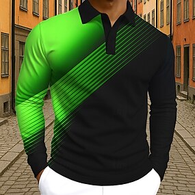 Homme Géométrique Polo manche longue Polos Revers Occasionnel Extérieur Athleisure Tenue quotidienne Impression 3D Boutons Printemps Automne Hiver Blanche Vert