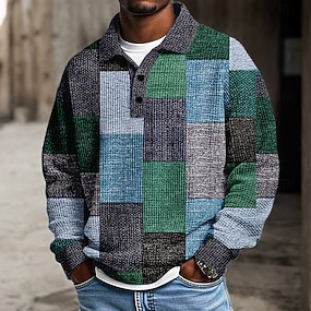 Homme Géométrique Chemises Polo Gaufre Chemise de golf manche longue Polos Chemises à Col Vêtement décontracté de travaile Vêtements de vacances Tenue formelle Vêtements de festival Boutons