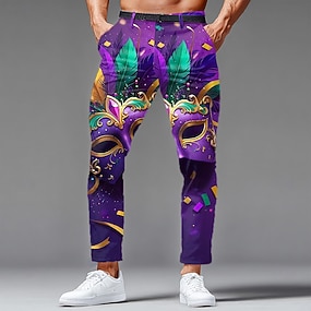 Mardi Gras Homme Carnaval Perles Masque à plumes Pantalons Dress Pants works Pantalons de Costume Taille Moyenne Vintage Rétro Fête Pantalon slim avec poches Printemps Automne Impression 3D Violet