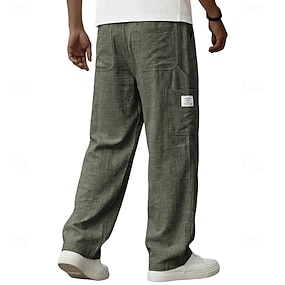 Homme Pantalons Cargo Pantalons en Lin Pantalons Pantalon d'été Pantalons Amples Avec Poches Taille Élastique Cordon de serrage Uni Confort Respirant Longueur complète Occasionnel Quotidien Fête
