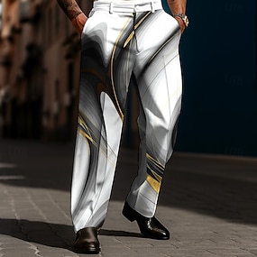 Homme Géométrique Dress Pants works Taille Moyenne Vêtement décontracté de travaile Formel Tenue Quotidienne Fermeture éclair Avec Poches Été Printemps Automne Impression 3D Blanche