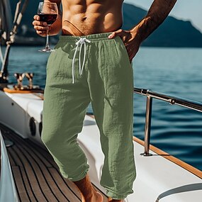 Homme Pantalons en Lin Pantalon capri Pantalon d'été Avec Poches Taille Élastique Uni Confort Respirant Longueur mollet Quotidien Extérieur Plage Vacances Mode Bleu Kaki foncé Micro-Élastique