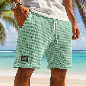 Homme Gauffré Shorts Shorts d'été Shorts de plage Short décontracté Cordon de serrage Taille Élastique Couleur Unie Confort Longueur Genou Quotidien Extérieur Fête Vacances Mode Noir Blanche