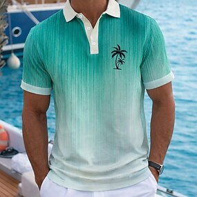 Homme Palmier Polos Hawaïens Manche Courte Polos Chemises à Col Occasionnel Athleisure Tenue quotidienne Vêtements de vacances Impression 3D Boutons Maille Respirante Printemps & Été Bleu Violet Vert