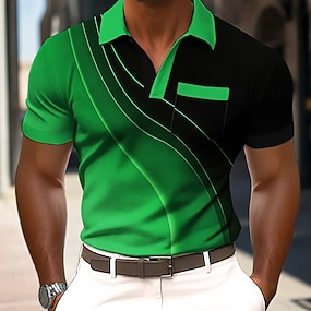 Homme Géométrique Golf Polos de Sport Manche Courte Polos Chemises à Col Occasionnel Athleisure Tenue quotidienne Impression 3D Boutons Été Printemps Bleu Vert Noir