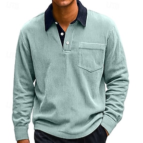 Homme Chemise en velours côtelé Chemise de golf Travail Occasionnel Revers manche longue Basique Moderne Bloc de Couleur Boutons Poche Avant Printemps Automne Coupe régulière Noir Blanche Rouge bleu