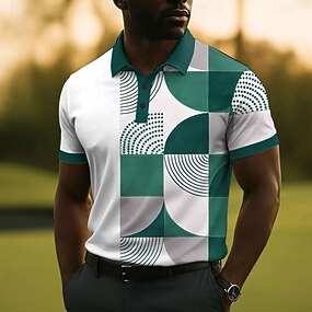 Homme Géométrique Polo Manche Courte Polos Chemises à Col Vêtement décontracté de travaile Athleisure Tenue quotidienne Boutons Été Bleu Blanche Vert