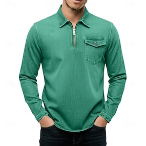 Homme Polo à fermeture éclair Polos de Golf Vacances Rue Fermeture éclair manche longue Mode Basique Uni Avec Poches Denim Printemps Automne Printemps & Automne Coupe régulière Noir Rose Claire bleu