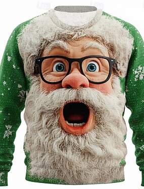 Pull de Noël moche Homme Père Noël Impression 3D Dessin Animé 3D Pull Tricots Col Rond Occasionnel Vacances Quotidien Festival Impression 3D Garder au chaud manche longue Printemps Automne Hiver