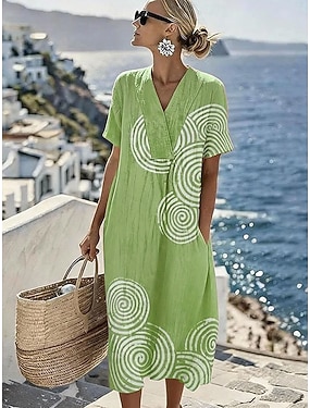 Femmes Robe Midi Robe Décontractée Robe d'Été Vacances Occasionnel Chaussures de plage Plage Soirée Coupe Ample Graphique Géométrique Manche Courte Col en V Jaune Rose Claire Marron Vert Été Printemps