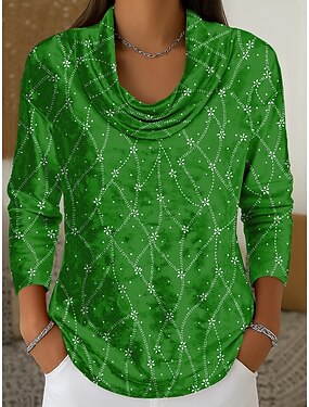 Chemise à manches longues T femme col rond tunique décontractée impression régulière hauts quotidiens de week-end bleu violet vert kaki printemps automne avant hiver