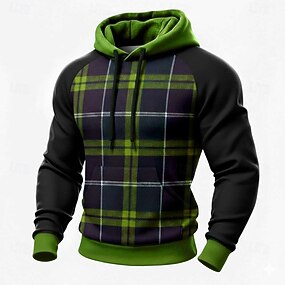 Homme Géométrique Plaid Sweat à capuche Sweatshirt Mode Quotidien manche longue Col ras du cou Maison Vêtements de rue Soirée Bleu Marron Vert Cordon de serrage Automne Hiver Designer S M L XL XXL XXL