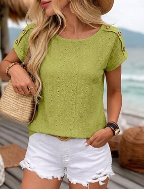 Femmes T-shirt Œillet Uni Mode Moderne Occasionnel Manche Courte Col en V Hauts Réguliers Quotidien Week-end Noir Blanche Jaune Rouge Vert Été Printemps