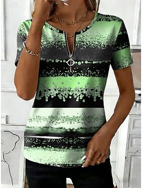 Femmes T-shirt Fermeture éclair Graphique Géométrique ancien Hawaïen Élégant Manche Courte Col ras du cou Hauts Réguliers Quotidien Sports Week-end Bleu Rose Claire Violet Vert Été Printemps