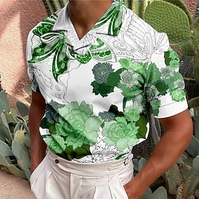 Homme Plantes Polos Hawaïens Manche Courte Polos Chemises à Col Occasionnel Athleisure Tenue quotidienne Vêtements de vacances Impression 3D Boutons Maille Respirante Printemps & Été Bleu Violet Vert