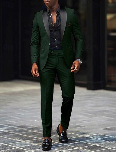 Homme Blazer Costumes Affaires Cocktail Fête de mariage 2 Pièces Mode Occasionnel Printemps Automne Polyester Bloc de Couleur Avec Poches Boutons Confortable Simple Boutonnage veste Gris foncé Noir