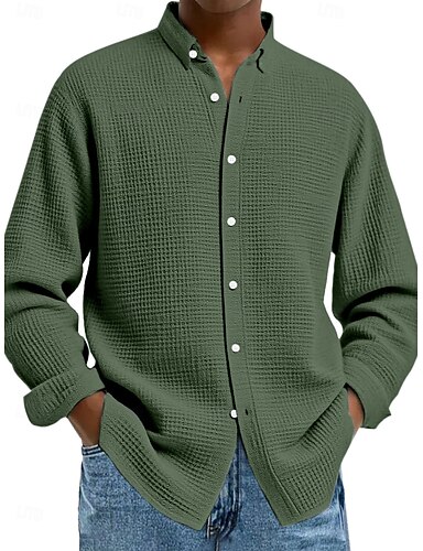 Homme Chemise gaufrée Chemise Décontractée Chemise Boutonnée Chemise en tricot gaufré Noir Blanche Vin bleu marine Bleu manche longue Uni Col Rabattu Occasionnel Quotidien Avec Poches Vêtement Tenue