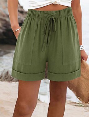 Femmes Short en coton et lin Pantalon en coton et lin Chinos Shorts Basique Court Taille haute Uni Avec Poches Ceinture Élastique Confortable Doux Micro-Élastique Extérieur Rue Bleu Noir Rose Claire product tag