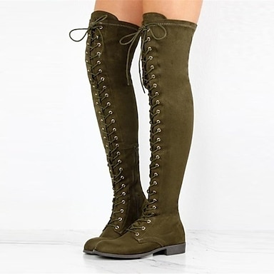 bottes en daim à lacets au-dessus du genou pour femmes avec talon plat – élégantes et confortables pour une tenue décontractée et hivernale