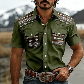 Homme Formes Géométriques Vintage Ethnique Chemise Western Chemises de travail Chemise de cow-boy Manche Courte Style Western Occasionnel Extérieur Vêtements de travail Été Printemps Col Rabattu