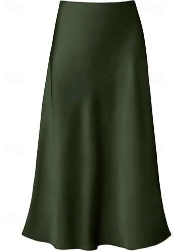 Femmes Jupes en satin Élégant ancien Mode Midi Taille haute Jupes Uni Froncé Patchwork Non Elastique Quotidien Soirée Vin Amande Rose Claire Vert Véronèse Été Spandex Satin