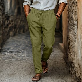 Homme Pantalons en Lin Pantalons Pantalon d'été Pantalons de Plage Cordon de serrage Avec Poches Conception à cordon élastique Uni Léger Respirant Longueur complète Yoga Salle de sport Mode Streetwear