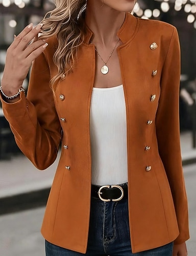 Femmes Blazer Extérieur Col montant Boutons Couleur Unie Respirant Mode Coupe régulière Vêtements d'extérieur manche longue Automne Noir S