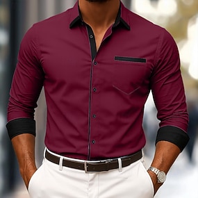 Homme Chemise Chemise habillée Chemise boutonnée Chemise sans repassage Chemise Boutonnée Bloc de Couleur Occasionnel Quotidien Bleu Ciel Blanche Vin Kaki manche longue Col Rabattu Printemps