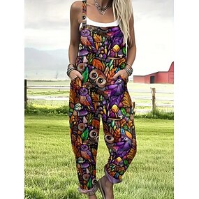 Salopette pour femmes 100% coton légère Graphique sans manches Larges jambes Col rond avec poche Vacances Quotidien Coupe ample Rouge Bleu Violet Été