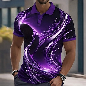 Homme Bloc de Couleur Géométrique Polo Manche Courte Polos Chemises à Col Vêtement décontracté de travaile Extérieur Athleisure Tenue quotidienne Impression 3D Boutons Été Printemps Bleu Rouge Violet