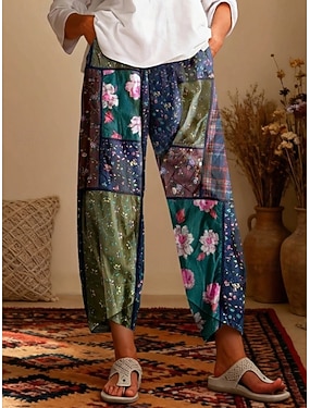 Femmes Coton mélangé Chinos Slacks Pantalon d'été Vacances Basique Décontracté / Sportif Longueur cheville Taille Moyenne Impressions Graphiques Pissenlit Avec Poches Bouffant Imprimé Confort